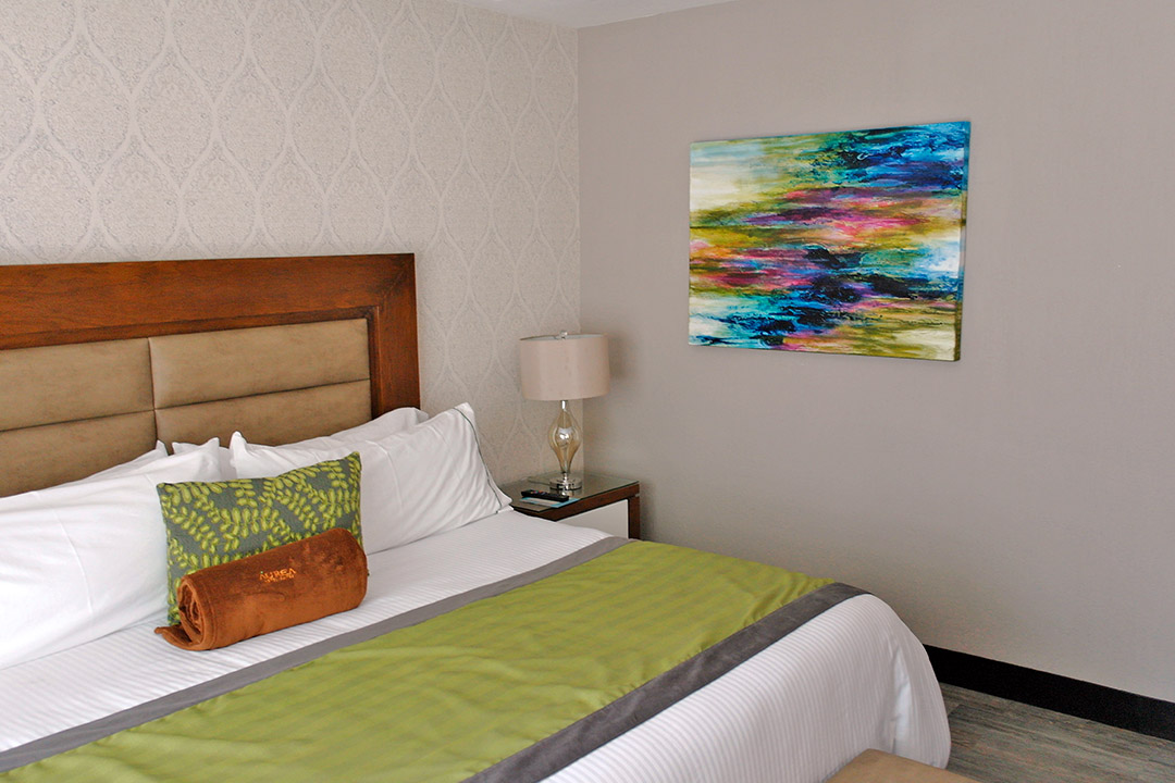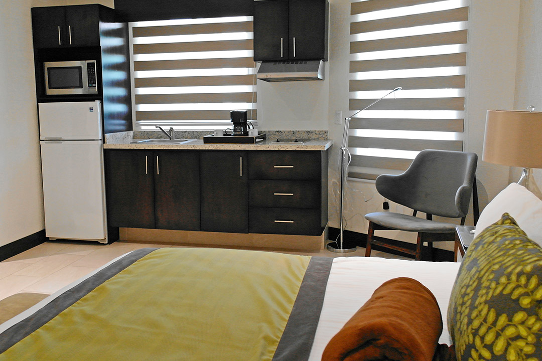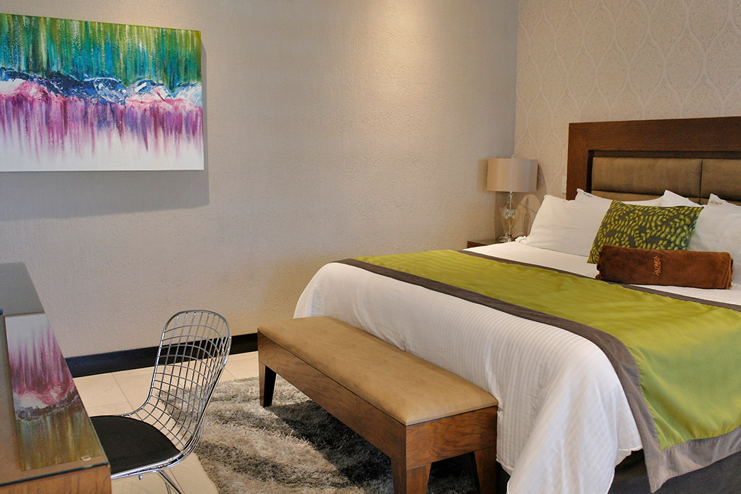 Experiencias por vivir, momentos para compartir, nuestra suite cuenta con 1 cama « king », televisión por cable, aire acondicionado, caja de seguridad, internet gratuito, escritorio de trabajo y cocineta*.